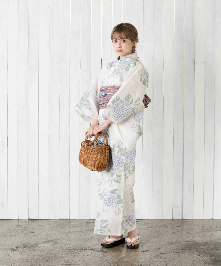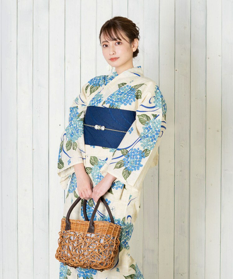 浴衣 レディース 3点セット(浴衣/帯/下駄) 青 水色 グリーン 黒 ベージュ あじさい アジサイ 紫陽花 レトロ レトロモダン フリーサイズ
