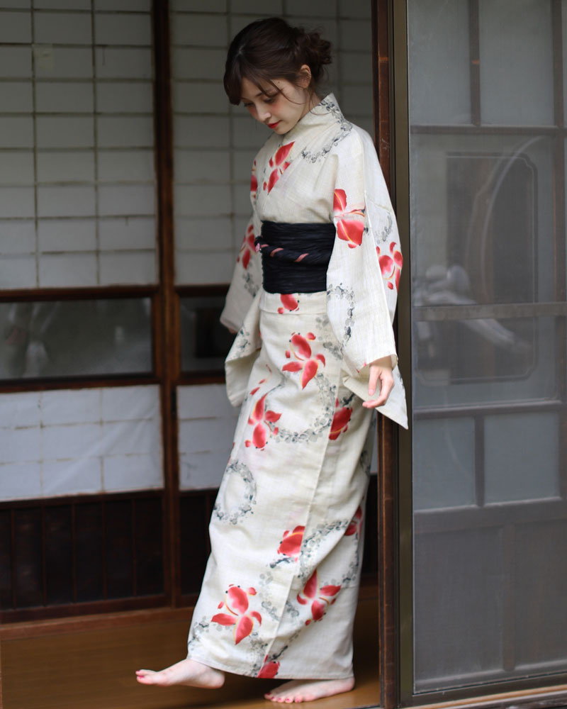 【2】浴衣の柄の出方について浴衣の縫製上、柄の出方が異なるものもあり掲載写真と柄の出方が異なる場合もあります。
